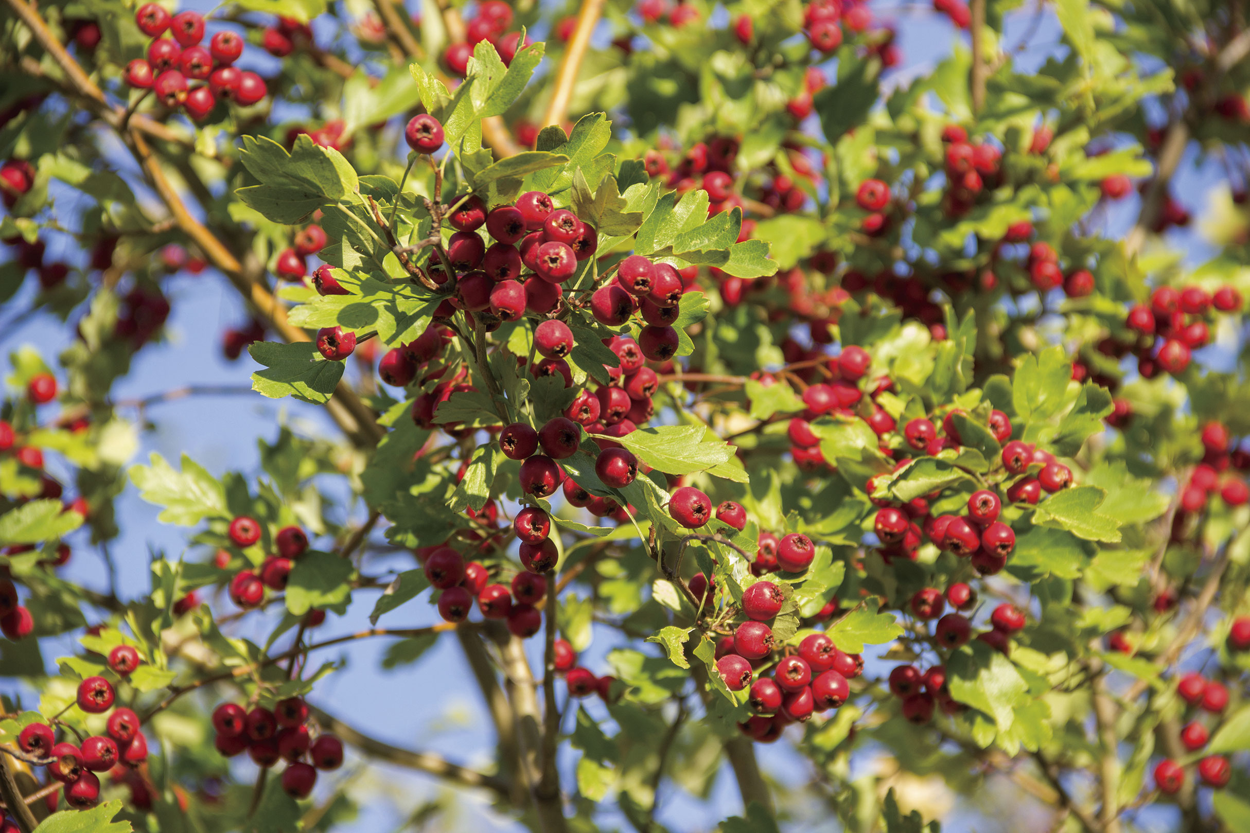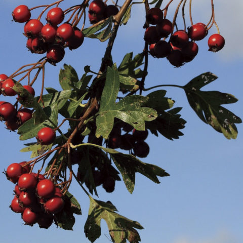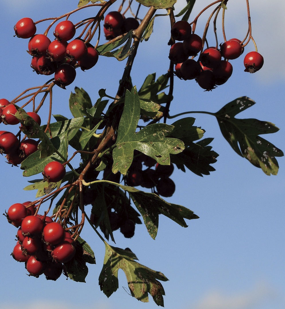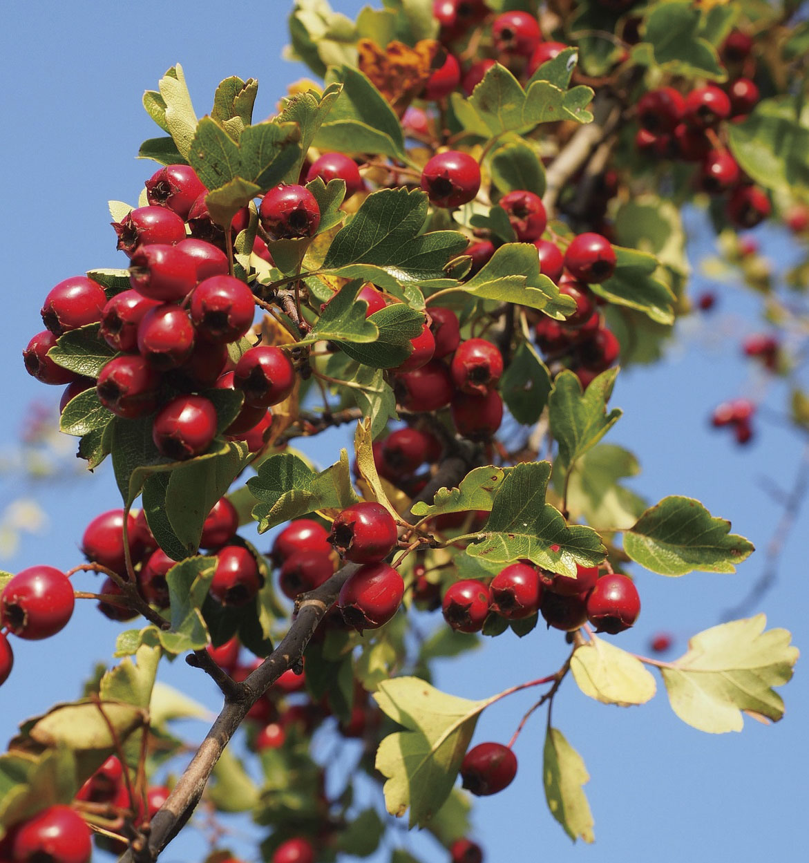 ホーソン(セイヨウサンザシ)はバラ科の落葉低木で、原産地はヨーロッパ、北アフリカ、西アジアとされ、現在では世界各地に広く分布しています。5月に白やピンクの花を咲かせることからメイフラワーとも呼ばれ、秋には赤い球形の偽果をつけます。生薬の「山査子」は近縁種のオオミサンザシで、消化器系のケアに有効とされています。