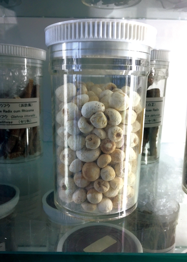 最後は構内の生薬標本棚の見学。生薬となったハンゲをチェックしたのは勿論ですが、珍しいものでは冬虫夏草や熊胆などもあり、気持ち悪いながらも貴重な体験となりました。
