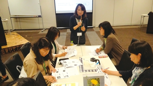 後半のプログラムは、橋本良枝先生による「メディカ ルハーブでテーマに沿ったブレンドティーをつくろう」 でした。メディカルハーブ検定で学ぶ15種類のハーブ のプロフィールを復習していく中で、先生ご自身の経験 によるハーブの使い方や注意事項を付け加えてくださり、よい復習の機会をいただくことができました。そして、 かぜ・不眠・胃腸の不調などのテーマに沿ったレシピが 紹介されたら、いよいよ実習です。グループごとにまずテーマを決めて、ブレンドするハーブの種類や割合を話し合いました。ハーブを選んだ理由やブレンド時の工夫 もシートに書き込んでいきます。もちろん実際にブレン ドしたハーブティーもいただき、みなで感想を述べ合ってから、いざグループごとの発表となりました。