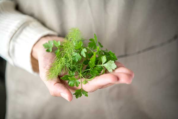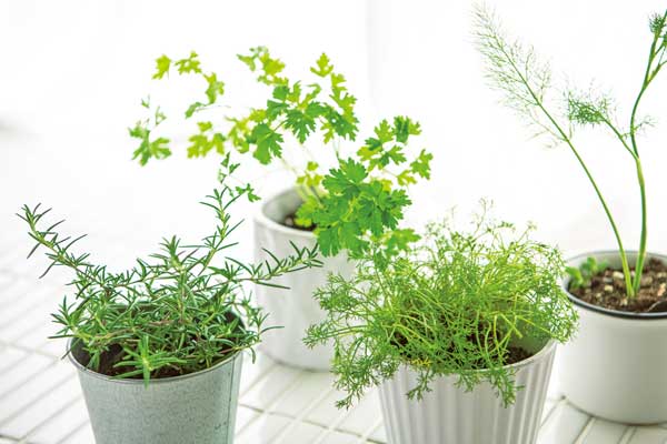ハーブの優れている点は、このように五感に訴え、様々なルートから心と体に働きかけるところにあります。美しい葉色、手触り、葉擦れの音、香り、味わい、その全てを楽しむために、ぜひ自分でハーブを育ててみましょう。花や緑のある環境 は心や体を癒やし、ストレスを解消してくれます。また、体や手を使って作業することで、身体的にも精神的にもよい効果をもたらします。植物のもつこうした力は、“ 園芸療法 ”として医療や介護の現場でも取り入れられています。ベランダのちょっとしたスペースやキッチンでも育てられるハーブのポットは、園芸ビギナーにもおすすめ。この秋は採れたてのハーブで料理やハーブティーを楽しみましょう。