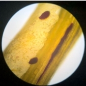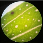 葉には黒点の他、明点(油室)が見られる。黒点と黒線は下から光を透過させると赤味を帯びて見える。