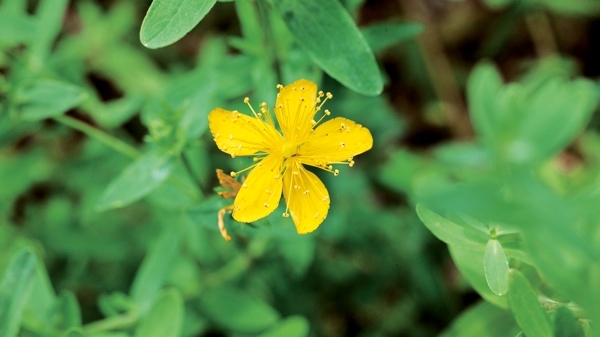 セントジョーンズワートは英語で書くとSt. John’s wort、学 名 Hypericum perforatumで、本邦ではセイヨウオトギリソウとも呼ばれています。黄色い花を咲かせる根茎性の多年草で、ヨーロッパやアメリカの草地で自生し、 欧州では聖ヨハネの誕生日である6月24日に収穫される風習があったことよりその名がついたハーブです。