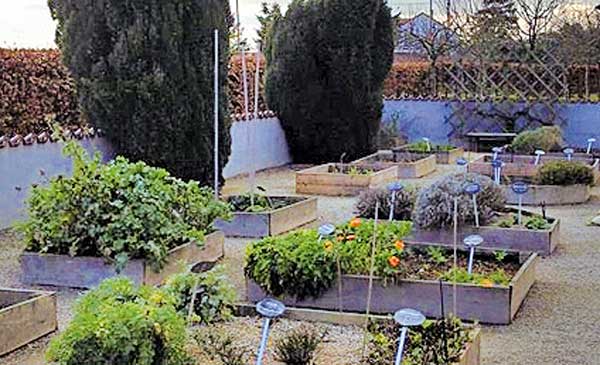 修道院の薬草の庭ヒルデガーデン、「ヒルデガルト」(Hildegard)という名前には、Hild に古高ドイツ語で「戦い」、gardに「護り」の意味があるとされ、少し前のドイツではよくある女性名だとか。そしてGarten「庭園」にも通じます。女性庭師であり、病と闘う女戦士の意味もあるのでしょう。修道院の中庭には施療院で使う薬草が野菜・果樹とは別に育てられます。最古の薬草園はカール大帝(742年~814年)が薬草園プランをザンクトガレン修道院に残し、南ドイツのボーデン湖中のライヘナウ島の修道院に修道士ストラボが「Hortulus」(小さな庭)をつくりました。マドンナリリー、ローズ、ソラマメ、キダチハッカ(サマーセイボリー)、コストマリー、コロハ(フェヌグリー ク)、ローズマリー、ペパーミント、セージ、ヘンルー ダ、ドイツアヤメ、ペニーロイヤルミント、スペアミント、クミン、ガーデン・ラヴィッジ(ラベージ)、 フェンネルです。