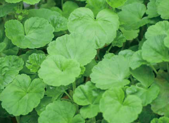●ゴーツコーラ 古くからアーユルヴェーダでは外用・内服に使われているハーブの1つ。この植物内の特性は外見的な特徴にも表れており、形が脳の形をしていることから、脳の活性化や記憶力の増進、集 中力の増加に役立つ。フラボノイドを含み血液の浄化と肌の血色をよくする効果も期待できる。