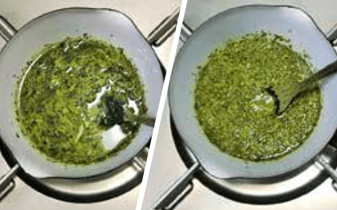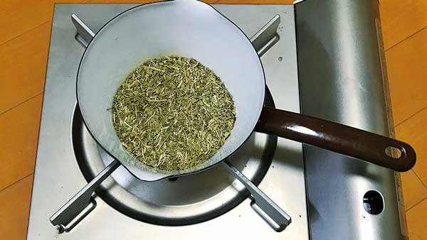 水分が完全になくなったら、火を止める。水分が残っている時は、煮物を作っているようなグツグツという音がする。水分が少なくなってくると、ブクブク、その後パチパチという音に変わった ら、水分がなくなった合図。温度計で計りながら煮込む。水分がある場合は100°Cを越すことはありません。100°Cを越したら、水分が完全になくなった証拠です。