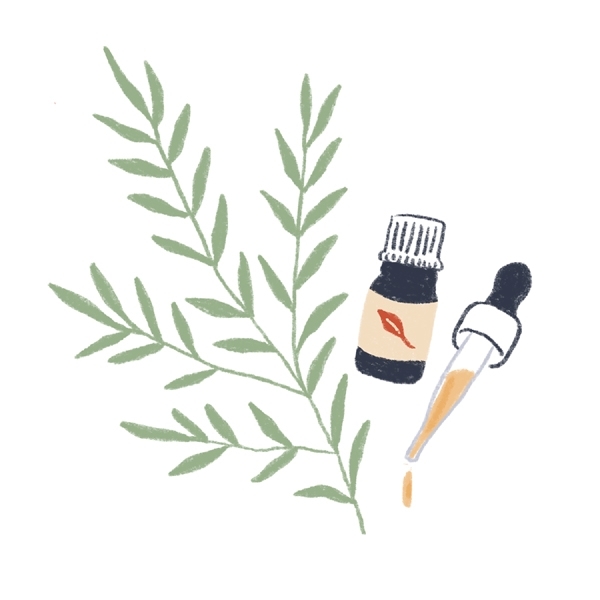 ジェルやクリームなど小さじ1杯あたり5滴の割合でティートリー精油を加えてよく混ぜる。コットンや綿棒につけて患部に塗る。希釈してやけどや床ずれ、日焼けのケアにも。
