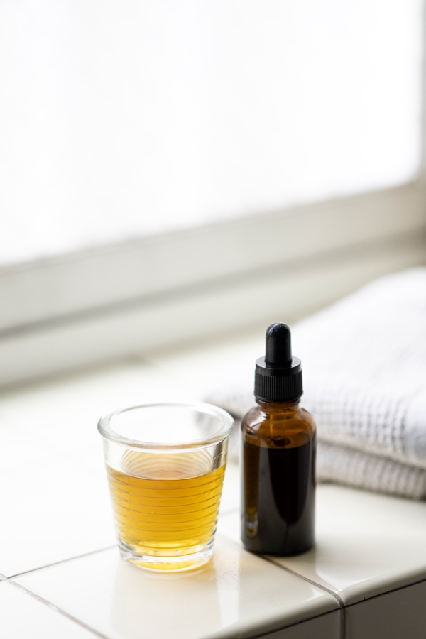 一番のおすすめは、ハーブチンキ。チンキはハーブをアルコール(ウォッカ、ホワイトリカーなど)に漬けて成分を抽出したもので、チンキ剤、ティンクチャー(tincture) とも呼ばれます。アルコールに漬けることで、お湯では抽出されないハーブの有効成分を効率よく引き出すことができ、長期保存できるのもメリットです。