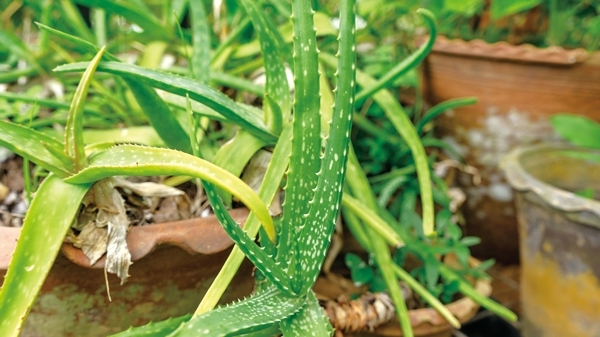 「医者いらず」ともいわれるアロエ。アーユルヴェーダでも、昔から外用にも内服にも使われていた万能植物です。日本でよく見かけるのはトゲのある「キダチアロエ」ですが、スリランカで使われているアロエは、真正アロエ、またはアロエベラで、こちらのほうが薬効効果は高いといわれています。葉肉部分には水分、ミネラル、ビタミン、アミノ酸が豊富で、化粧品やヘアケア製品にもよく使われています。肌に潤いを与え、乾燥による小じわのケアに。夏強い日差しを浴びたお肌のケアや最適です。