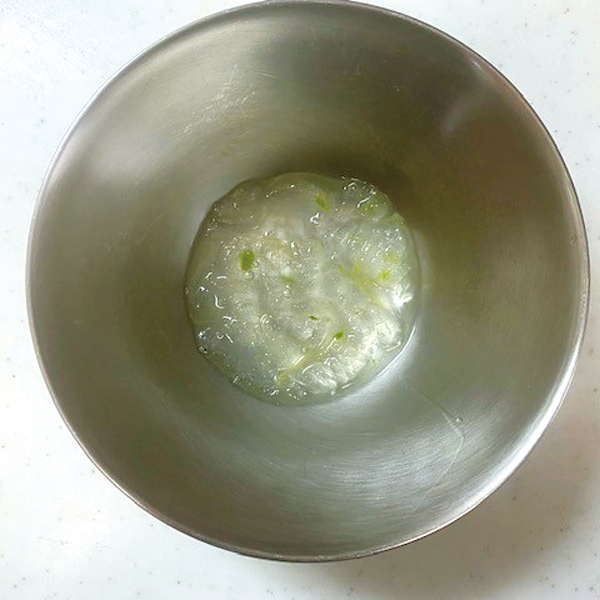 ③中の葉肉ジェルをスプーンで削ぎ落とし、さらに軽く水洗いします。