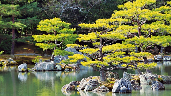 和風庭園、洋風庭園、どちらも樹木は大切ですが、特に日本庭園では、自然の風景をつくりだす大事な要素となります。その中でもマツは日本の風景の中に欠かせない存在であり、1年中緑の葉をつけ、寒さに強く、樹齢も長いことなどから、節操の象徴であり、神の依より代しろともいわれてきました。神仙思想、不 老不死、長寿の願いを表している日本庭園で、極楽浄土や海岸の風景を表現し、茶庭(露地)では奥山の雰囲気を出すために植えられました。