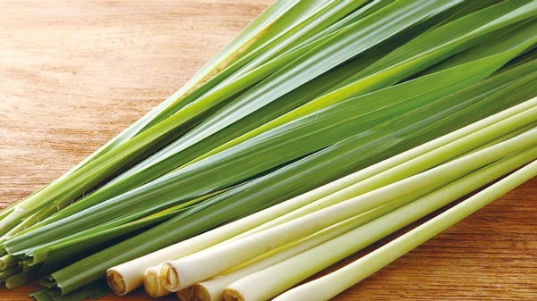 ❷レモングラスは根元の白い部分をみじん切りにし、葉の部分を適当な長さに切る。