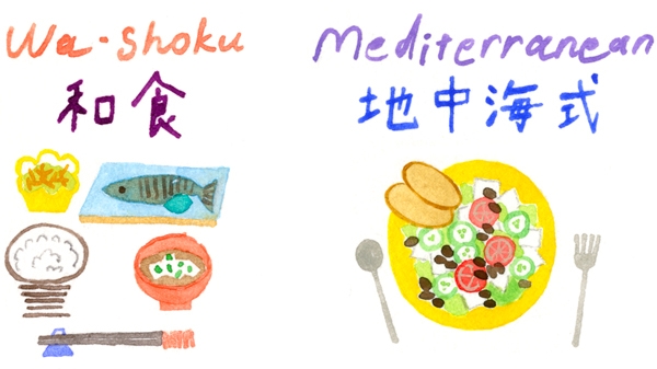 健康的な食事の例として「昔の和食から塩分を引き、低脂肪の乳製品を加えた食事」や、「魚介類や野菜をたっぷり使う地中海食から脂質を減らした食事」があります。参考にしてみましょう。