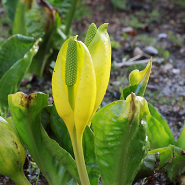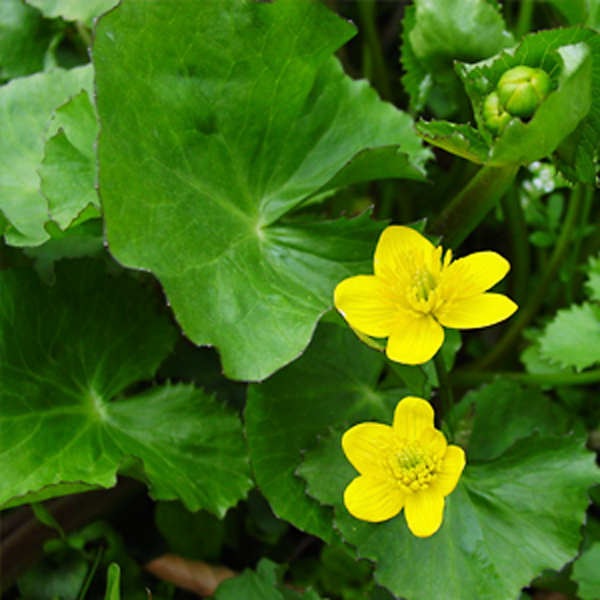 山地の湿地や渓流沿いに群落をつくる金色の花。株を中心に、四方に伸び広がる茎をサルの腕に見立てて「猿猴草」と書きます。