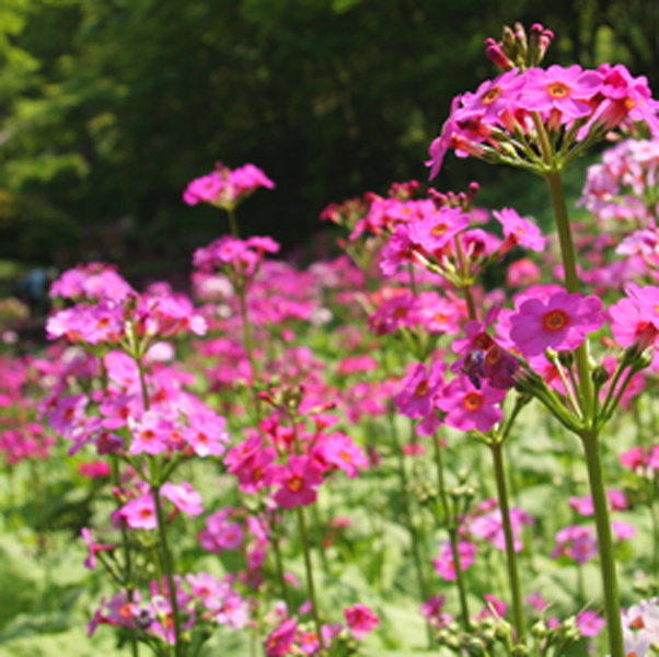 谷間の水辺や山地の湿地に生える多年草。輪状の花が何段にも咲き上がる姿が仏塔の九輪を思わせ、ついた和名。約6,000株の群落は当園の自慢です。