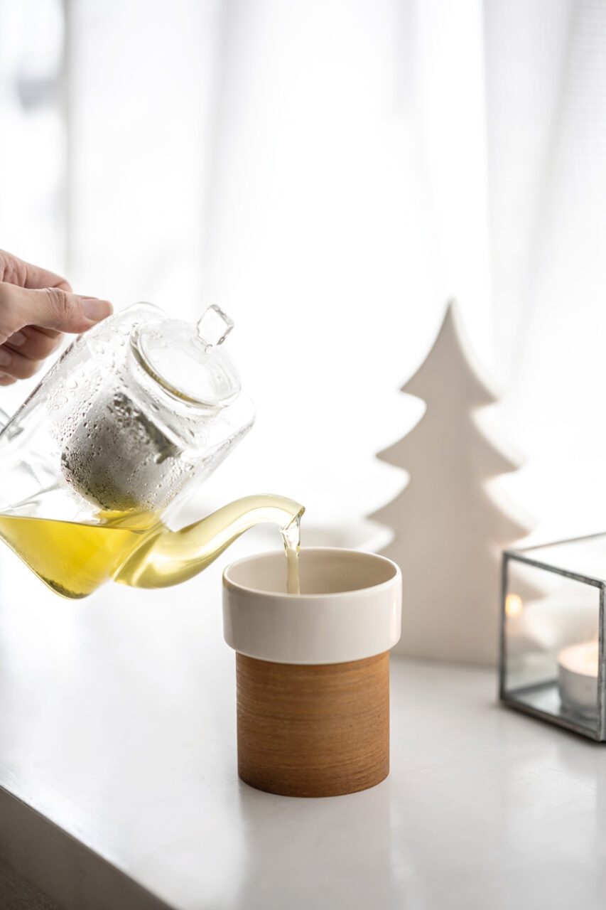 1.ポットにネトルと緑茶を入れ、熱湯を注いだらふたをして5分ほど抽出する。