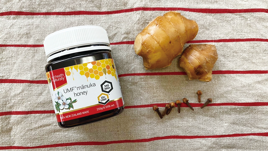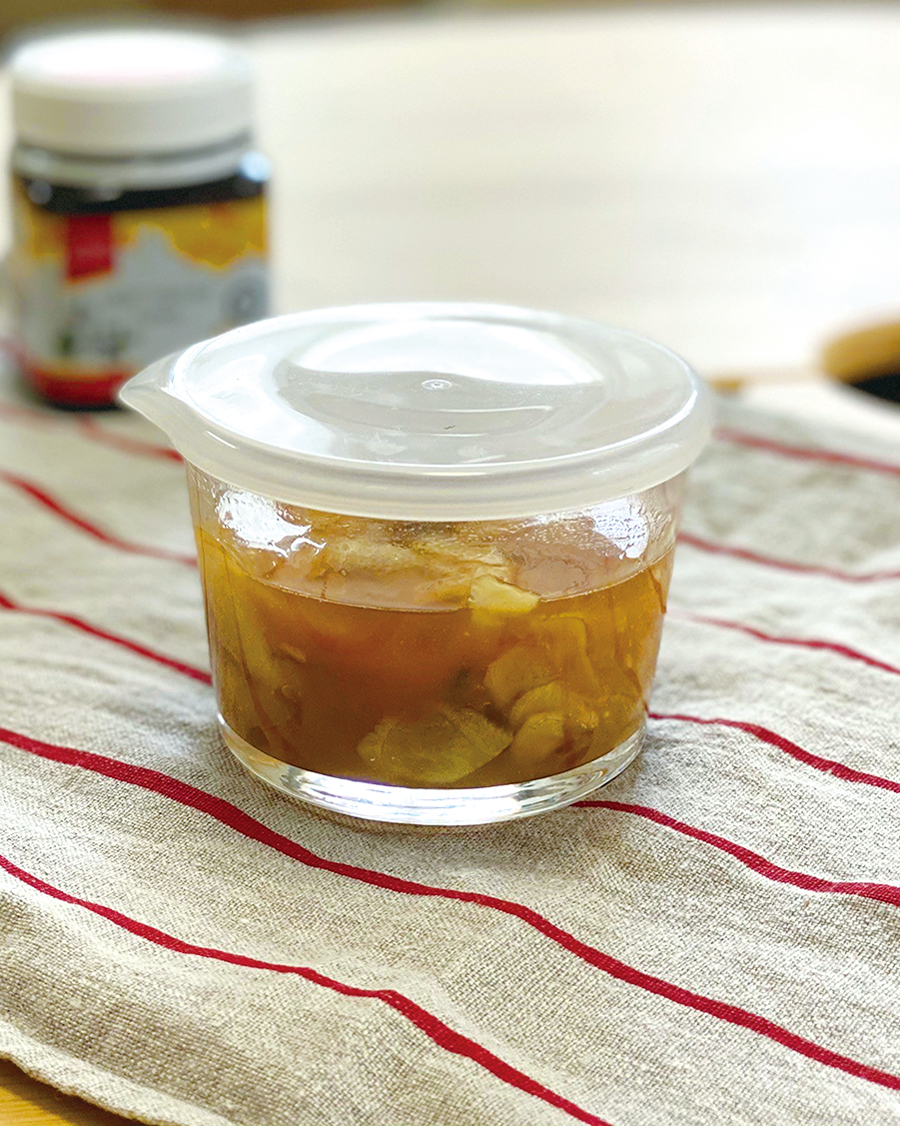 ②熱湯消毒した保存容器に❶とクローブを入れたら、ショウガとクローブが浸かるまでハチミツを入れる。保存容器に移し替えれば完成。