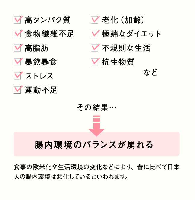 食生活の変化やストレスで現代人の腸内環境は乱れがち