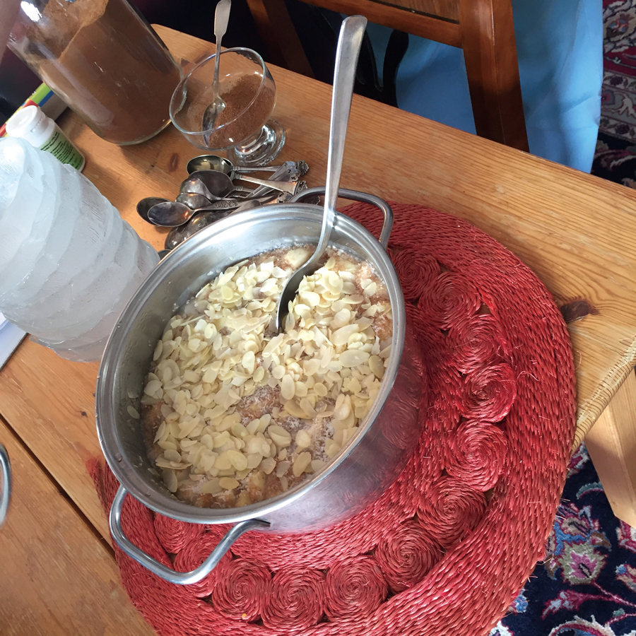 - メロン、少量のデーツ(なつめやし)、アーモンド。