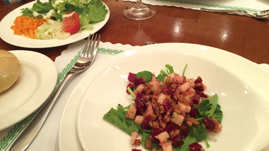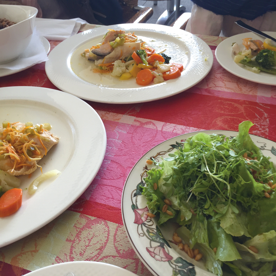 - レタス(必ずドレッシング[ ヒルデガルトドレッシング/ 大さじ1のワインビネガーと大さじ3のひまわり油に甘味少々好みでスパイス(ガランガル・フェンネル・ヒソ ップなど)]をかける)、