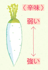 ダイコンは、先端部が首の部分の6倍も辛いので、利用部位を変えることで辛味を調整できます。