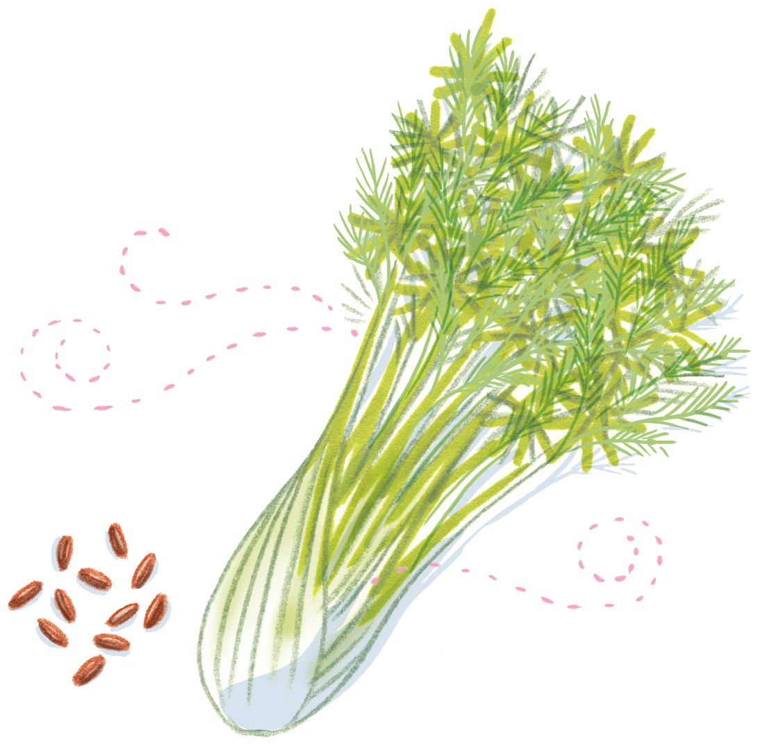 果実には消化を助ける働きや、むくみを緩和する効果がある。和名は「茴香(ウイキョウ)」。葉は魚料理の香りづけに、果実はスパイスやハーブティーに使われる。