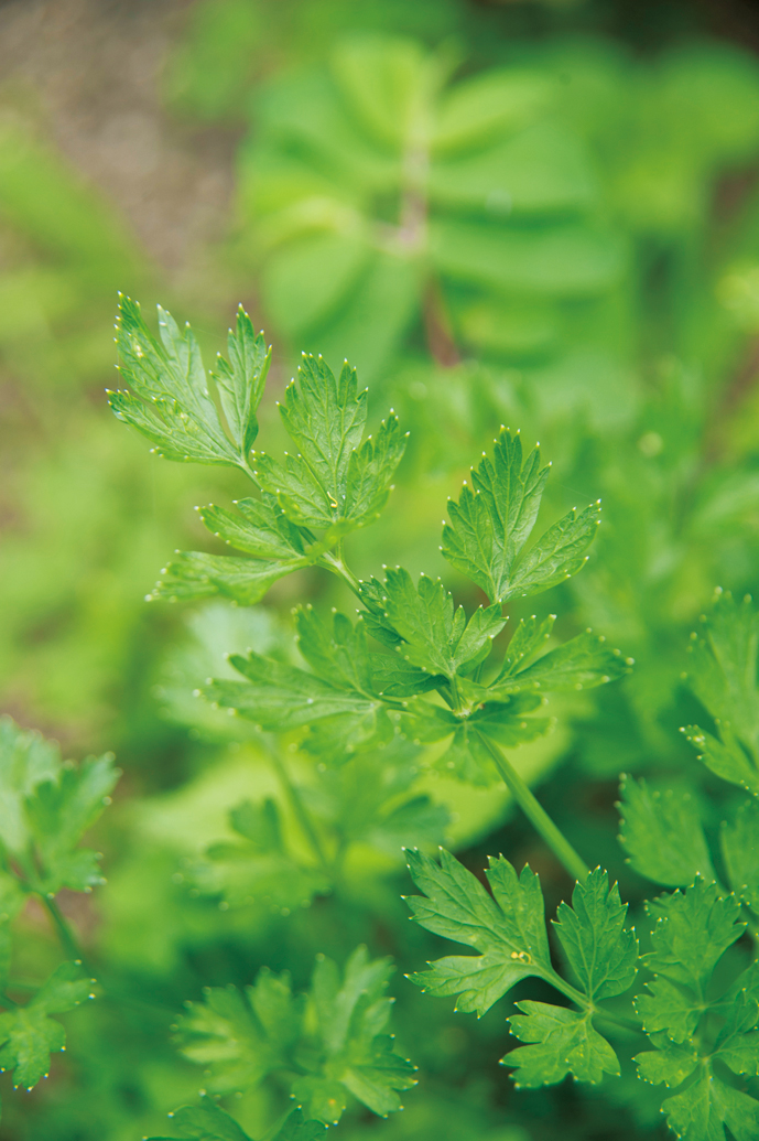 独特の強い香りは食欲増進作用をもち、消化器系の諸症状にも効果的。果実は香辛料になる。タイでは「パクチー」、中国では「香菜(シャンツァイ)」と呼ばれる。