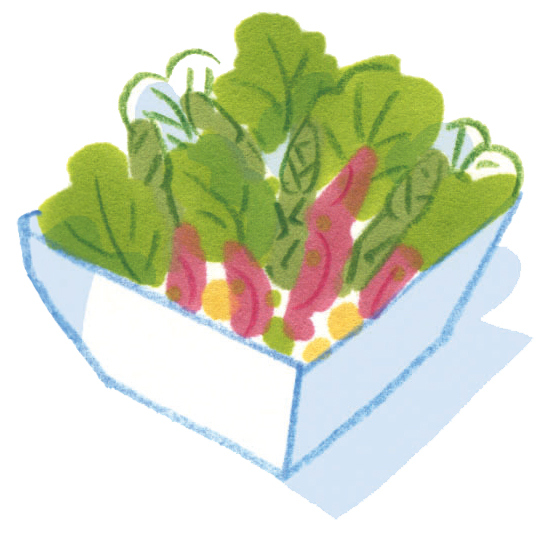 健胃、強壮作用があるとされる。葉にはピリッとした香ばしい味わいがあり、サラダにする他、炒めものやパスタのトッピングにも。英語で「ロケット」とも呼ばれる。