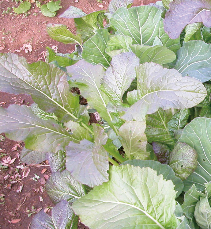 葉にワサビのような風味とさわやかなほろ苦さがある。葉を利用する他、春まで育てると花が咲いてタネができ、これを加工してマスタードとして使用される。