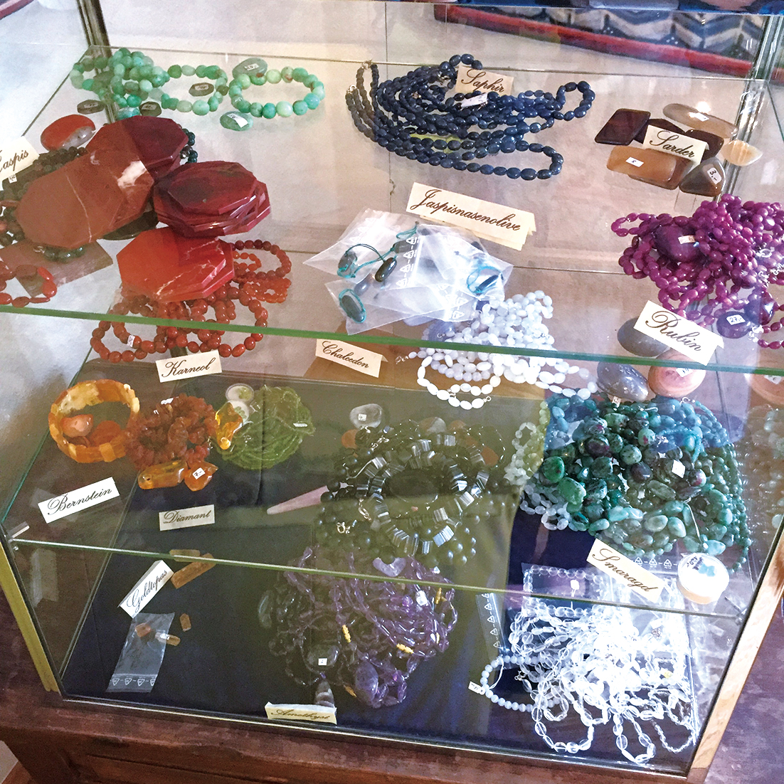 日本では、パワーストーンという名前でブレスレットやペンダント、マッサージ用具などに。起源をさかのぼると『旧約聖書』の出エジプト記、古代ギリシアの『アリストテレスの鉱物書』、オリュンポス神話を背景にオルフェウスの石についてともよばれた宝石賛美書『リティカ』、古代ローマのプリニウス『博物誌』、聖ヒルデガルトと同時代の司教マルボドウス『石について』に見ることができます。