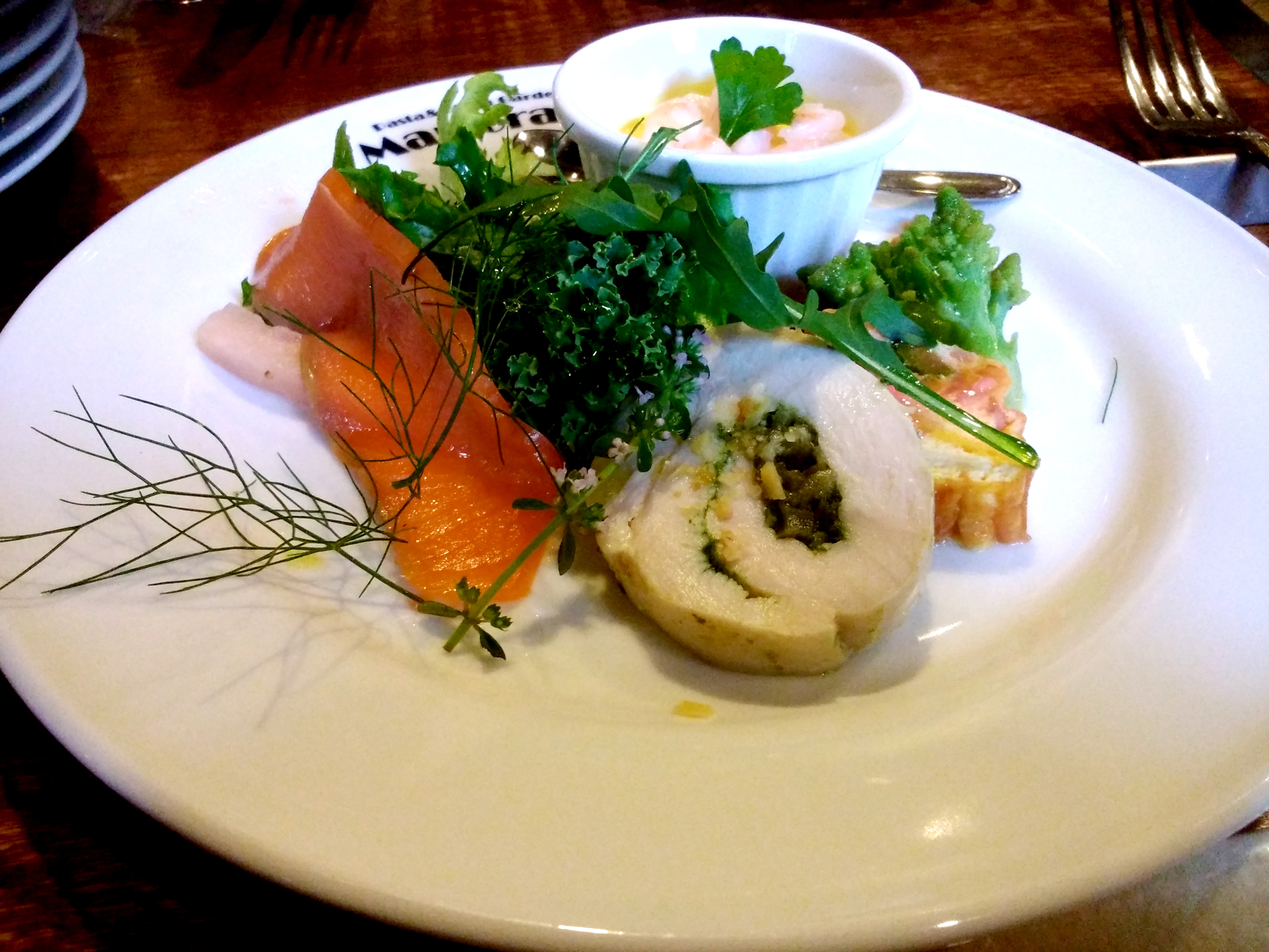出して頂いた料理はドルチェを含め全部で7種類。サーモンを使用したハーブマリネの前菜盛合せをはじめ、驚いたのが種類の異なるホール状のピザが3種類出てきたことです。サービス精神に感動しました。また、食卓を囲むことで会話も弾み様々な肩書きや背景をもつ方々がいらっしゃいました。
