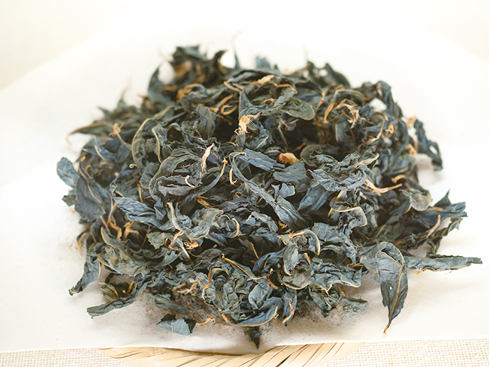 一方で、アイタデの葉を通風乾燥機や電子レンジなどで高温乾燥させると、酵素が不活性化し、配糖体のインディカンは分解されず、乾燥葉は緑のままで藍色にはなりません。