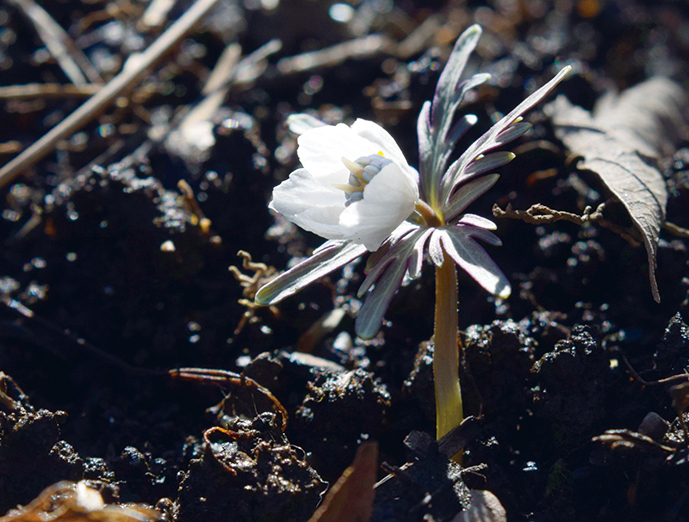 開花時の草丈は5㎝ほど、花径は2㎝ほどの小型の植物。同じキンポウゲ科のトリカブトと共通する毒成分を含むので、可憐であるが要注意