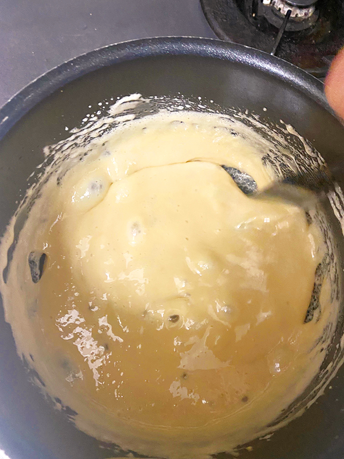 カルダモンを砕き、鍋にナッツ以外全ての材料を入れる。焦がさないよう弱火で、ゴムベラなどで3~4分混ぜる。