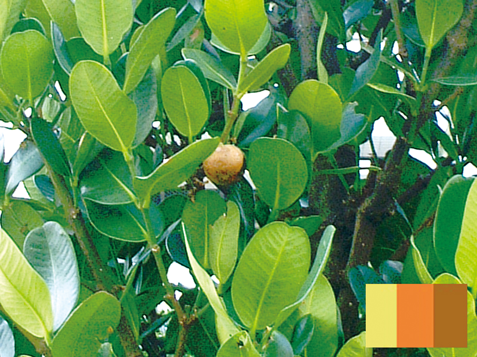 沖縄からフィリピンにかけて見られる高木です。成長は大変遅いですがとても頑丈な樹で、台風の多い沖縄では防風林・防潮林として植栽されています。マンゴスチンと同じ属に当たるためマンゴスチンとの接ぎ木の試験なども行われています。