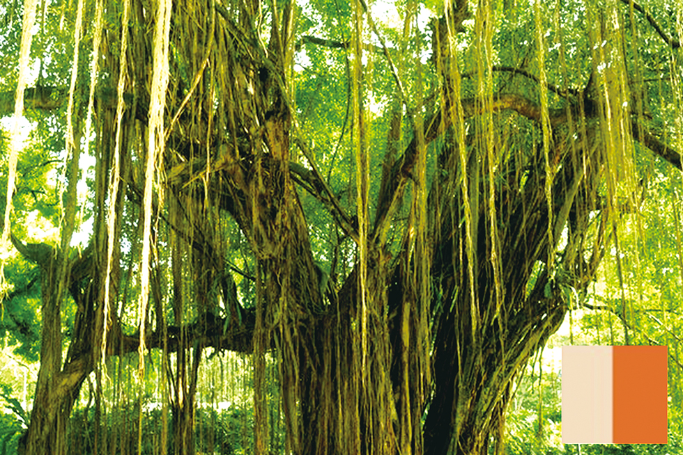 太平洋諸島に広く分布する樹木です。横に水平に枝を伸ばした広い葉をもつこの木は、日陰をつくるのに最適で公園や街路樹として利用されています。