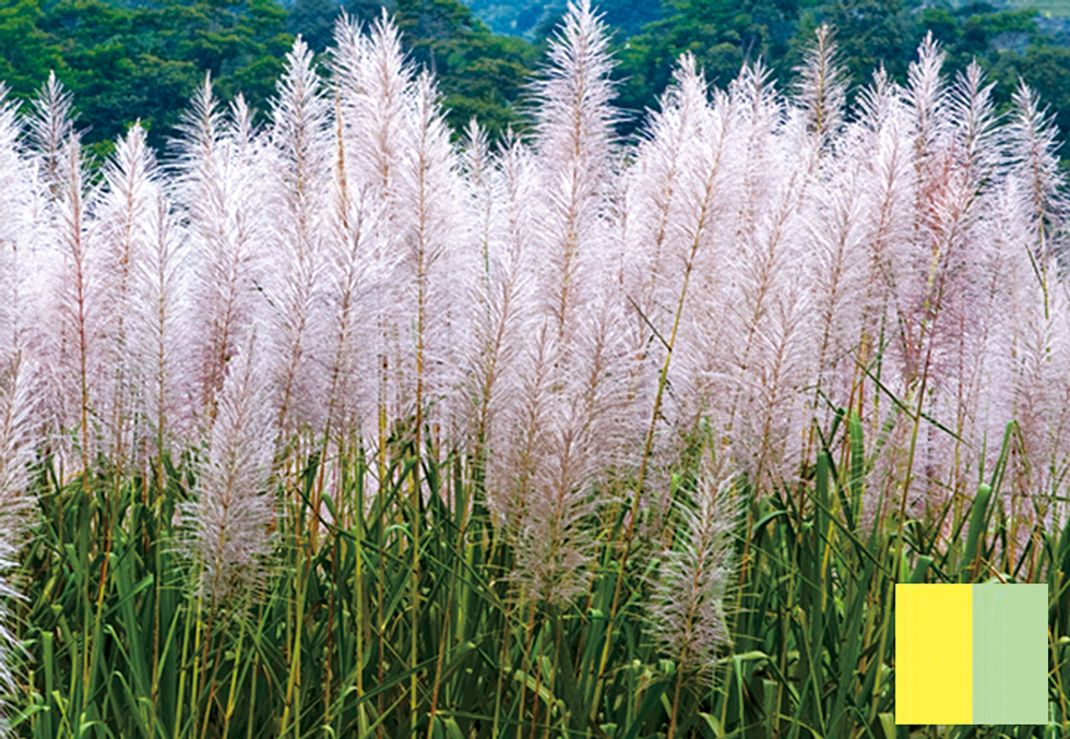 九州南部から亜熱帯アジア・熱帯に分布するショウガ科の植物。抗菌効果が高く古くから薬草として使われていました。現在でも餅を葉で包んで蒸す料理などに使われます。近年では優れた防虫効果を利用して畳材としても利用されています。