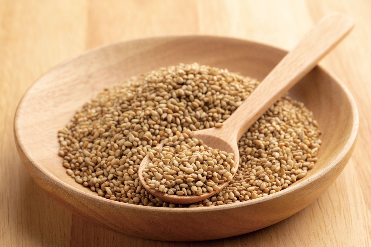 ゴマの薬効をもたらす成分は、ゴマリグナンとよばれる物質で、その代表は「セサミン」や「セサミノール」などです。また、ゴマには、“若返りのビタミン”といわれるビタミンEが多く含まれます。近年、これらの物質は、血圧降下効果、肝臓の機能改善、老化を抑制する作用などをもち、健康長寿への役割が知られています。