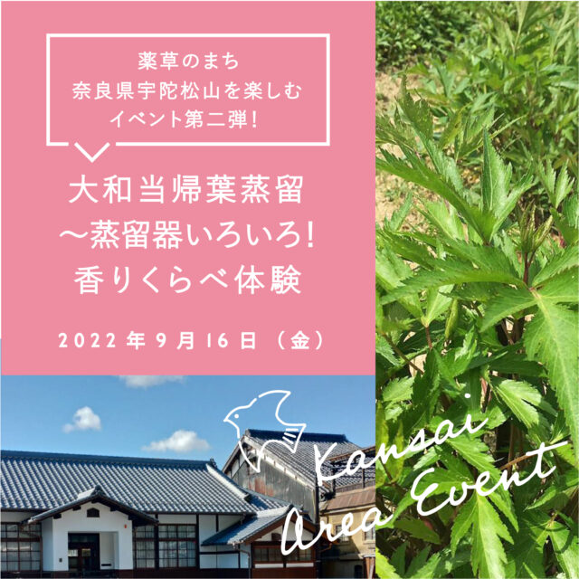 2022年9月16日 (金) 【関西地区イベント】大和当帰葉蒸留~蒸留器いろいろ!香りくらべ体験(キャンセル待ち受付中!)