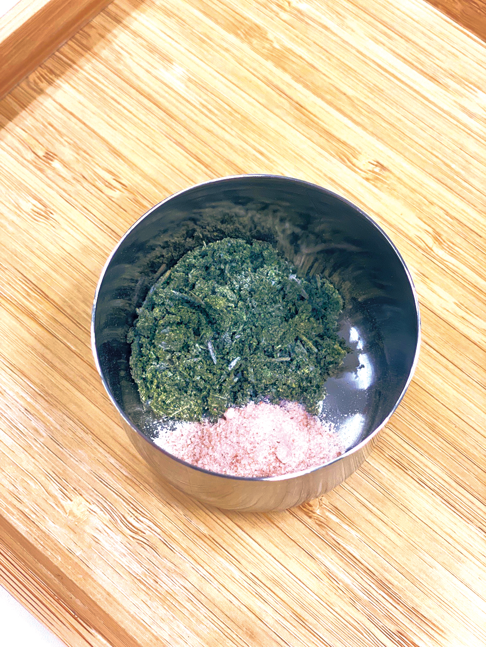 ハーブパウダー3に対して、岩塩パウダー1を混ぜる