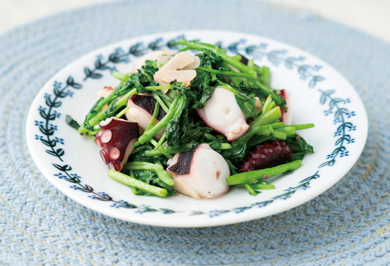 季節のハーブを楽しむレシピ <クレソン> タコとクレソンのアンチョビ炒め