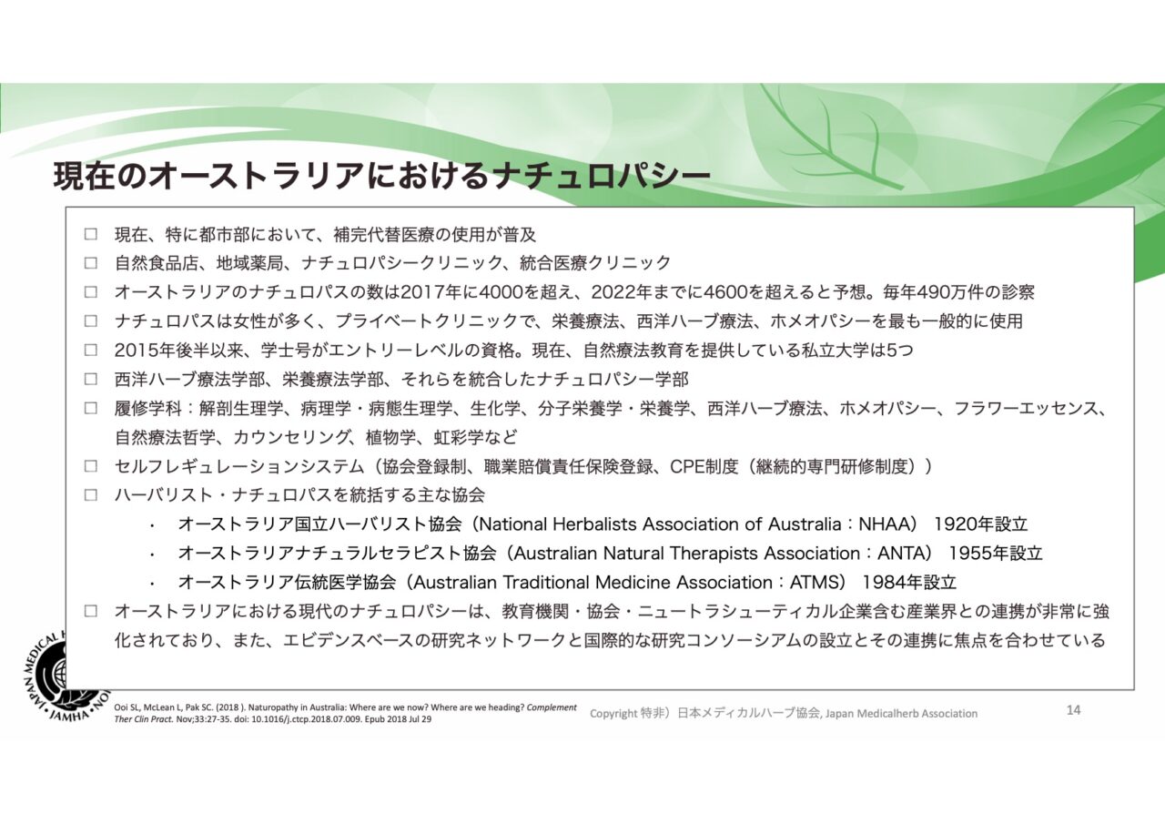 - オーストラリアにおけるナチュロパシーの歴史と現在の資格・教育・制度