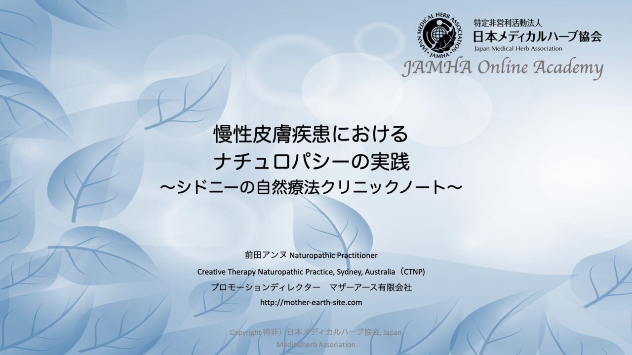 オーストラリア在住ナチュロパス前田アンヌ先生による、ナチュロパシーを用いた慢性皮膚疾患の対処法講座です。