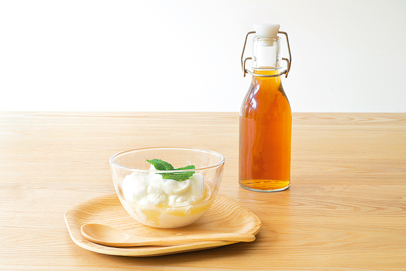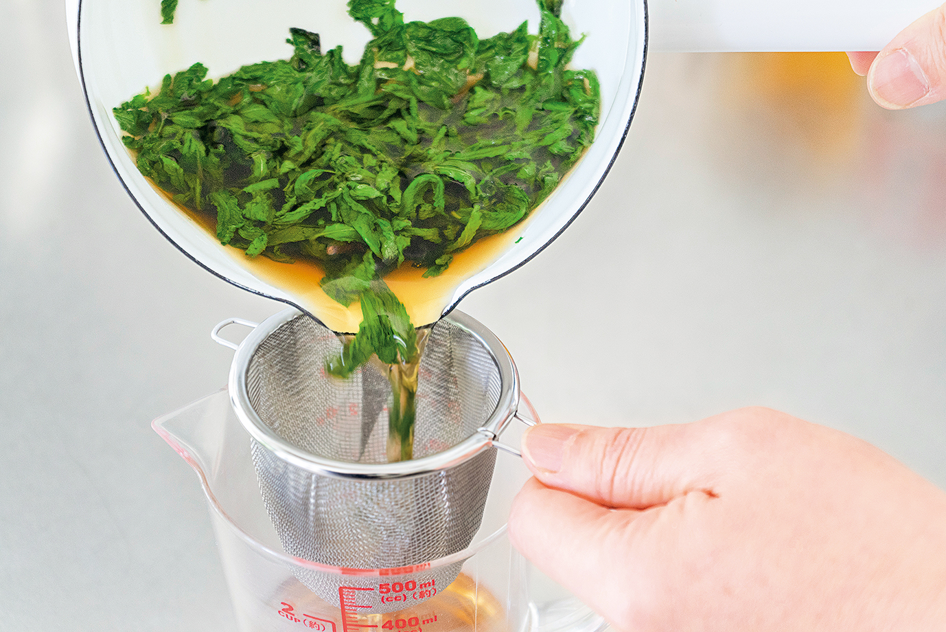 ④10分間そのまま蒸らし、濾す。あらかじめ消毒した保蔵ビンに移し、冷蔵庫で保存する。