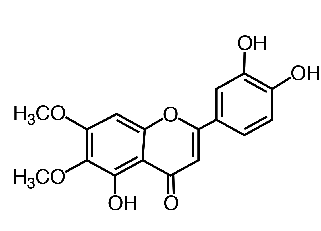 セージから、STAT3シグナル阻害物質として、筆者らがスクリーニングしてきた3種の化合物、(a)カルノソール、(b)ルテオリン、(c)シリシリオールと、NK細胞活性化機能を持つ、柑橘類に含まれる、(d)ノビレチンの化学構造。