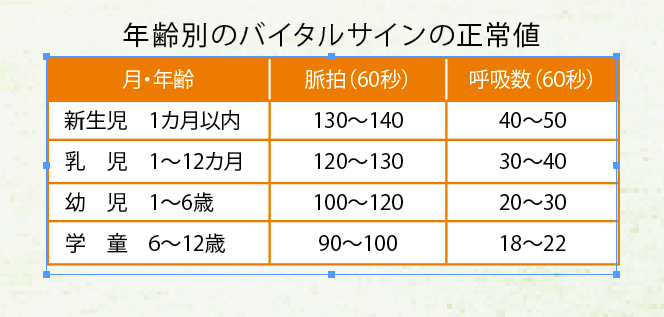 成人男性の心拍数は毎分65~70回、成人女性は70~80回なのに対し、幼児の心拍数は110回前後と、標準的な大人の約1.5倍です。6歳くらいになると90回程度になります。