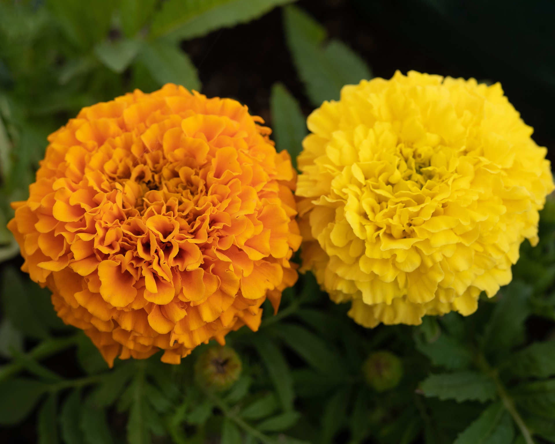 一般名 アフリカンマリーゴールド(African marigold)、センジュギク(千寿菊)、マンジュギク(万寿菊)、Aztec marigold, Mexican marigold, big marigold