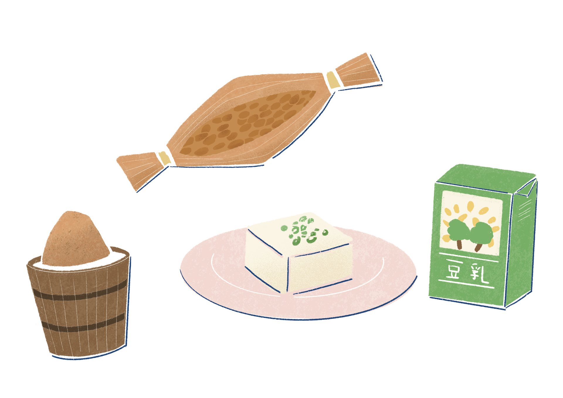- 食事は量より質を心がけ、特にタンパク質、ビタミン、ミネラルを十分に摂る。イソフラボンを含む大豆食品の摂取もよい