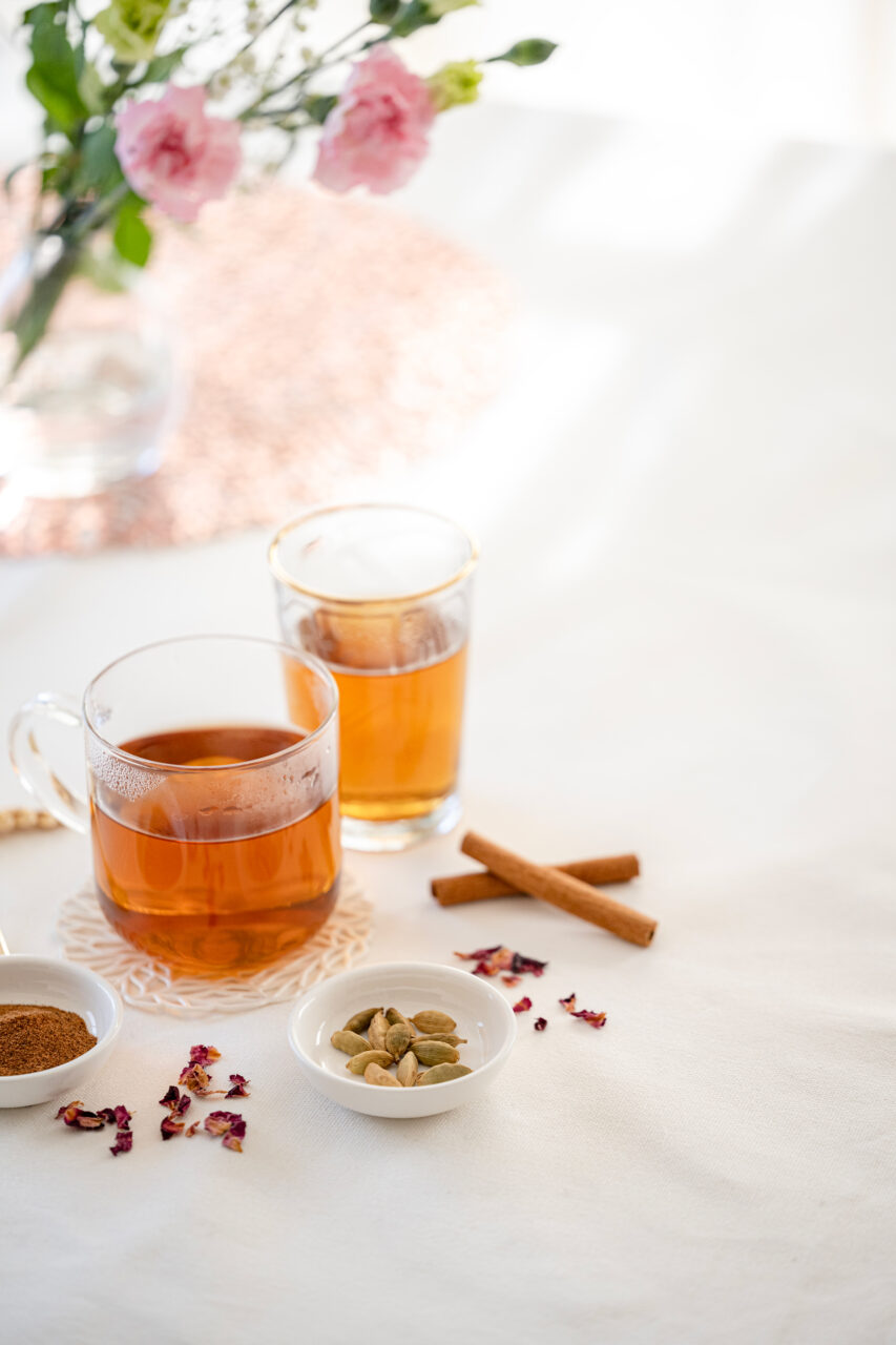 淡い味わいのお茶なので、お好みでナツメグ、シナモン、カルダモンなどを加えてもよいでしょう。