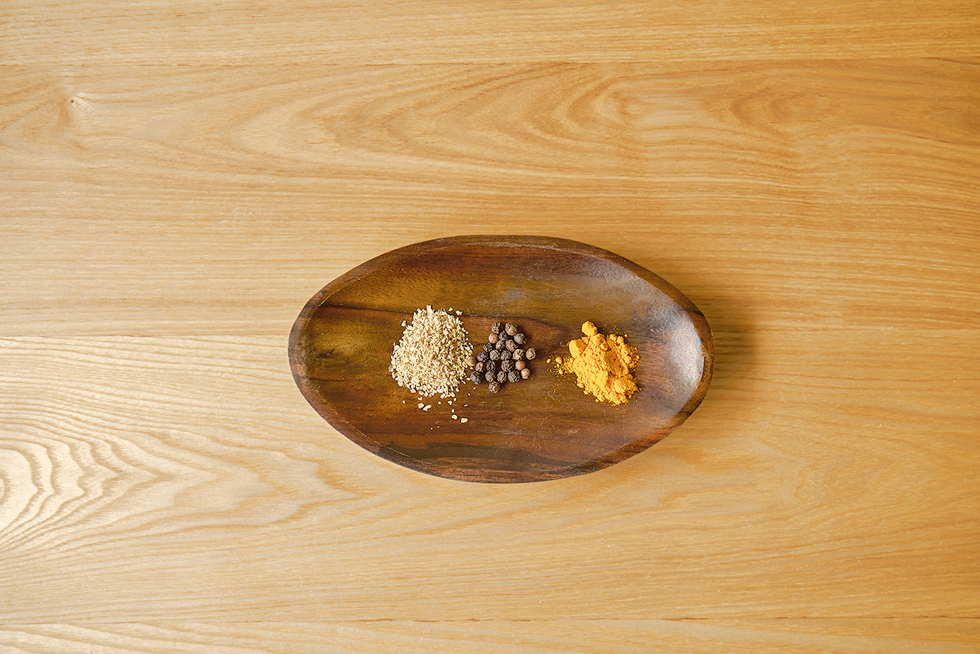 - ブラックペッパーとドライジンジャーは初めから入れ、ターメリックパウダーは火を止めた後、入れる