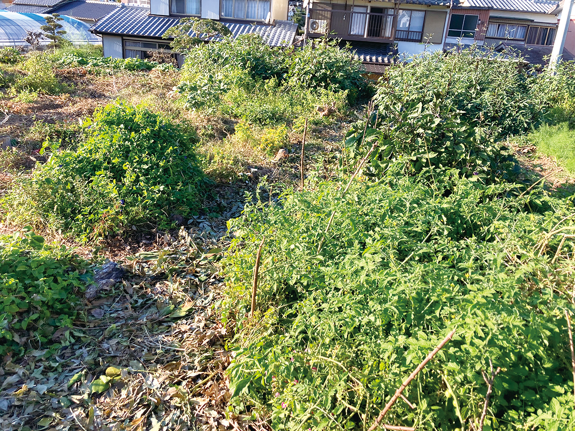 雑草が生えてくれば、それを抜かずに地上部だけを刈り取って、根を地中に残します。刈り取った地上部はその場に積むか土をかけておきます。それを繰り返すことで、土壌生物の豊富な土になります。